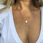 【並行輸入品】KExercisbeauty ロザリオ ブラックビーズ クロスネックレス ロングチェーンネックレス レディース ゴールドギフト Her