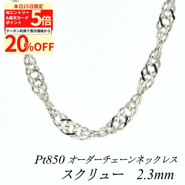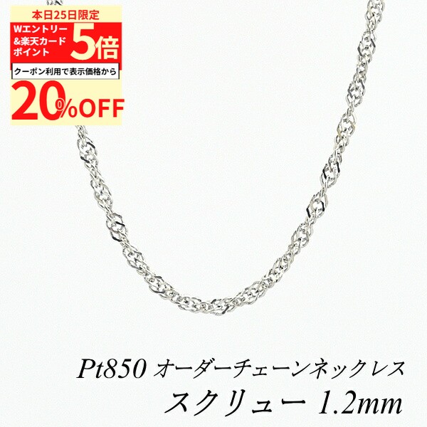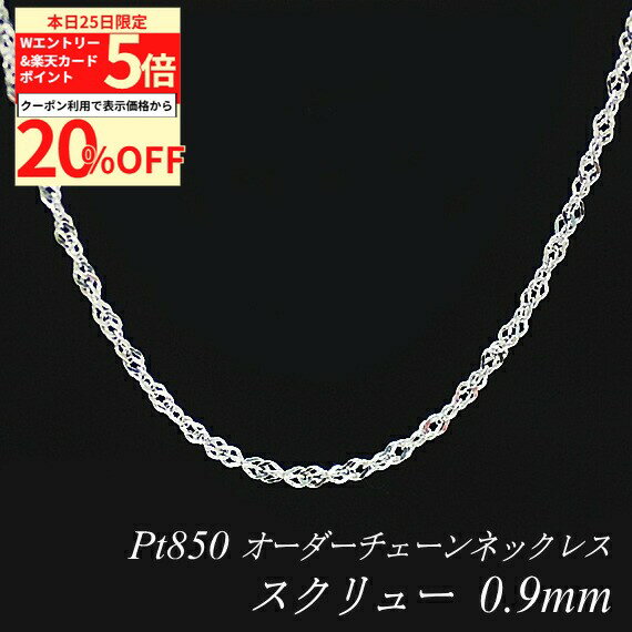 【20%OFFクーポン+Wエントリー&楽天カードでP5倍23:59まで】プラチナ ネックレス Pt850 pt850 プラチナ850 スクリューチェーン 0.75mm 長さ選べるオーダーチェーン 40cm〜120cm 45cm 50cm 55cm 60cm ロングネックレス ネックレス チェーン だけ