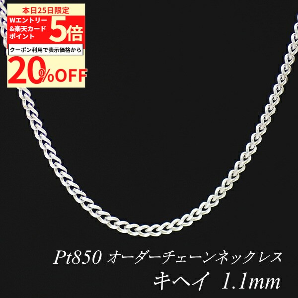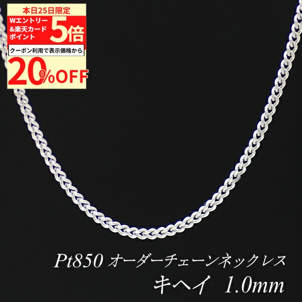 【20%OFFクーポン+Wエントリー&楽天カードでP5倍23:59まで】プラチナ ネックレス 喜平チェーン 1.0mm 長さ選べるオーダーチェーン 40cm〜120cm 45cm 50cm 55cm 60cm Pt850 pt850 プラチナ850 きへい キヘイ 180日間お修理保証