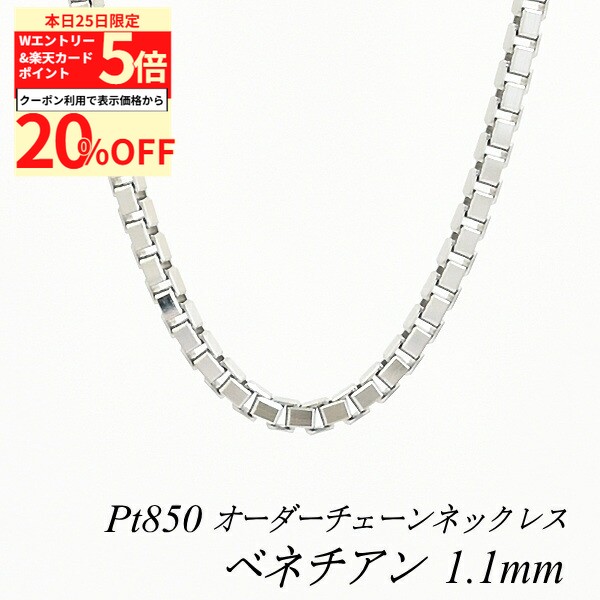 【20%OFFクーポン+Wエントリー&楽天カードでP5倍23:59まで】プラチナ ネックレス Pt850 pt850 プラチナ850 ベネチアンチェーン 1.1mm 長さ選べるオーダーチェーン 40cm〜120cm 45cm 50cm 55cm 60cm 日本製 ロングネックレス チェーンのみ ベネチアン