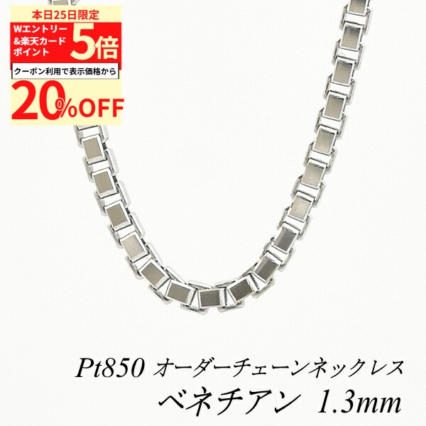 【20%OFFクーポン+Wエントリー&楽天カードでP5倍23:59まで】プラチナ ネックレス Pt850 pt850 プラチナ850 ベネチアンチェーン 1.3mm 長さ選べるオーダーチェーン 40cm〜120cm 45cm 50cm 55cm 60cm 日本製 ロングネックレス チェーンのみ ベネチアン