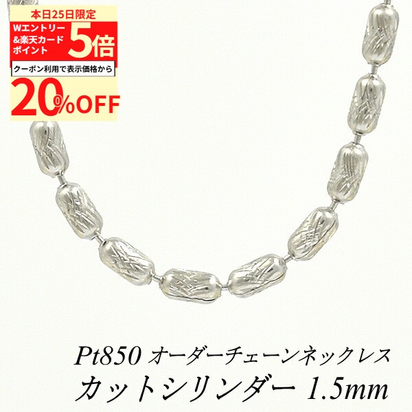 【20%OFFクーポン+Wエントリー&楽天カードでP5倍23:59まで】プラチナ ネックレス Pt850 pt850 プラチナ850 カットシリンダーチェーン 1.5mm 長さ選べるオーダーチェーン 40cm〜120cm 45cm 50cm 55cm 60cm ロングネックレス チェーンのみ シリンダーチェーン