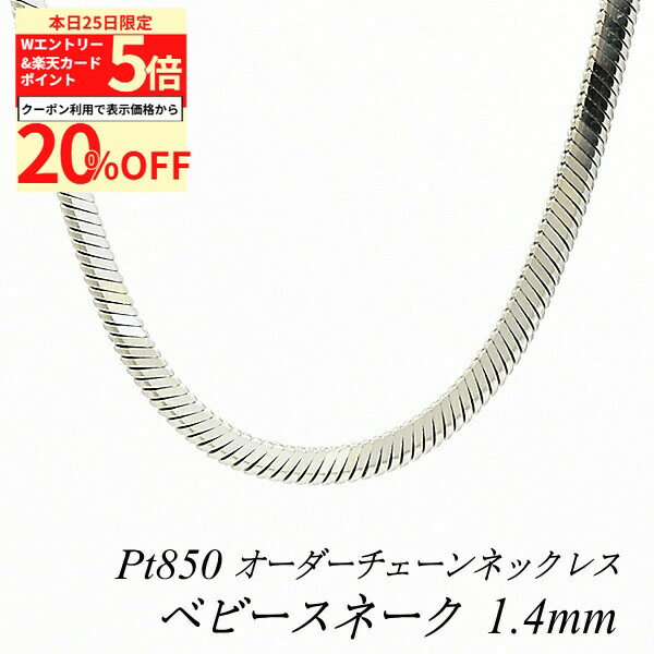 【20%OFFクーポン+Wエントリー&楽天カードでP5倍23:59まで】プラチナ ネックレス Pt850 pt850 プラチナ850 ベビースネークチェーン 1.4mm 長さ選べるオーダーチェーン 40cm〜120cm 45cm 50cm 55cm 60cm ロングネックレス チェーンのみ スネークチェーン