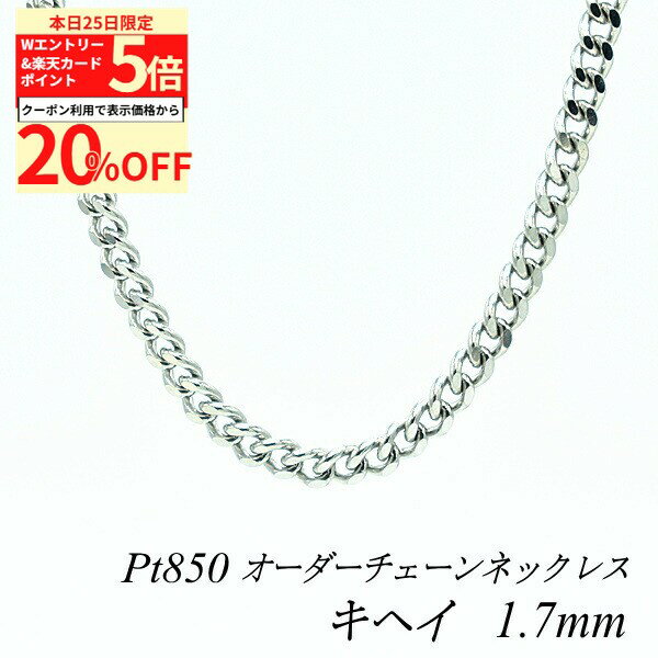 【20%OFFクーポン+Wエントリー&楽天カードでP5倍23:59まで】プラチナ ネックレス Pt850 pt850 プラチナ850 喜平チェーン 1.7mm 長さ選べるオーダーチェーン 40cm〜120cm 45cm 50cm 55cm 60cm 日本製 ロングネックレス チェーンのみ きへい キヘイ