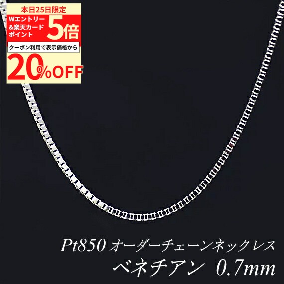 【20%OFFクーポン+Wエントリー&楽天カードでP5倍23:59まで】プラチナ ネックレス ベネチアンチェーン 0.7mm 長さ選べるオーダーチェーン 40cm〜120cm 45cm 50cm 55cm 60cm Pt850 pt850 プラチナ850 ベネチアン 180日間お修理保証