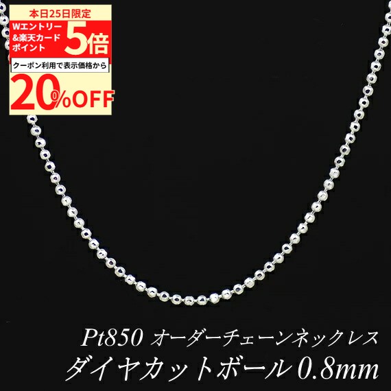 【20%OFFクーポン+Wエントリー&楽天カードでP5倍23:59まで】プラチナ ネックレス ダイヤカットボールチェーン 0.8mm 長さ選べるオーダーチェーン 40cm〜120cm 45cm 50cm 55cm 60cm Pt850 pt850 プラチナ850 180日間お修理保証