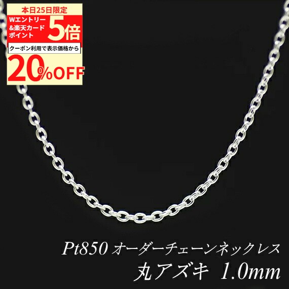 【20%OFFクーポン+Wエントリー&楽天カードでP5倍23:59まで】プラチナ ネックレス 丸アズキチェーン 1.0mm 長さ選べるオーダーチェーン 40cm〜120cm 45cm 50cm 55cm 60cm Pt850 pt850 プラチナ850 あずき 小豆 180日間お修理保証