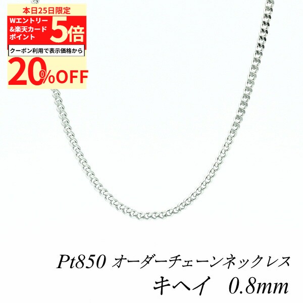 【20%OFFクーポン+Wエントリー&楽天カードでP5倍23:59まで】プラチナ ネックレス Pt850 pt850 プラチナ850 喜平チェーン 0.8mm 長さ選べるオーダーチェーン 40cm〜120cm 45cm 50cm 55cm 60cmロングネックレス チェーンのみ チェーンだけ きへい キヘイ