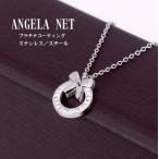 ネックレス レディース リボンリングモチーフ プラチナコーティング 鎖チェーン40+5cm ステンレス鋼 送料無料