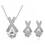 ピアス ネックレス 大粒CZダイヤ 斜めクロス レディース シルバー ゴールド プラチナ仕上げ ゴージャス エレガント 記念日 誕生日 激安アクセ