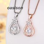 ネックレス レディース しずく 雫 揺れるダイヤ 踊る石 可愛い ピンクゴールド 女性 彼女 嫁 母 妻 クリスマスプレゼント