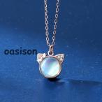 猫ネックレス レディース ねこ 可愛い ムーンストーン 6月誕生石 ピンクゴールド 女性 彼女 嫁 娘 母の日ギフト お祝い ギフト