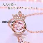 ネックレス レディース/揺れるダイヤ クイーンクラウン 王冠/ピンクゴールド プラチナ仕上げ シルバー925/ 女性 母の日ギフト 記念日