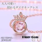 ネックレス レディース/揺れるダイヤ クイーンクラウン 王冠/ピンクゴールド プラチナ仕上げ シルバー925/ 女性 誕生日プレゼント 記念日