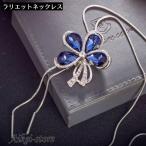 ネックレス ペンダント ラリエット ロング レディース アクセサリー 揺れる スネークチェーン ラインストーン 花 リボン