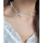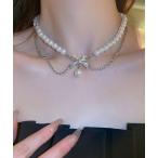 ネックレス 2連 リボン パール ラインストーン ネックレス レディース