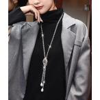 ネックレス シルバーカラー ラインストーン ペンダント ロングネックレス レディース アクセサリー おしゃれ かわいい シンプル