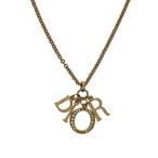 中古 クリスチャンディオール ネックレス ロゴ メタル ラインストーン ゴールド メッキ GP アクセサリー レディース 女性
