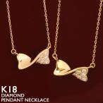 18金 ネックレス レディース K18 ダイヤモンド リボン ラインストーン ゴールド 18K シンプル 華奢 アズキチェーン