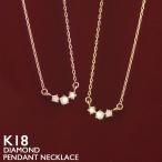 18金 ネックレス レディース K18 3粒 ダイヤモンド バー ゴールド ラインストーン 18K シンプル 華奢 アズキチェーン