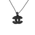 CHANEL◆ココマーク/ネックレス/--/ラインストーン/BLK/トップ有/レディース