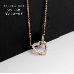 ネックレス レディースハート クロス ラインストーン ピンクゴールド ステンレススチール