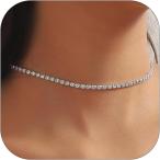 【並行輸入品】HUASAI テニスネックレス レディース キラキララインストーンチョーカーネックレス クリスタルチョーカーネックレス ゴールドラインス
