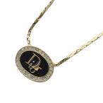 ディオール Dior ヴィンテージ ロゴ オーバル ラインストーン ネックレス ペンダント ゴールド色 ブラック /YO23 ■GY ■OH レディース
