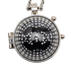 シャネル ココマーク ラインストーン ミラー ネックレス シルバー ブラック メタル レザー レディース CHANEL 【中古】