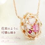 ピンクトルマリン ネックレス マルチストーン ローズクォーツ ルビー ダイヤモンド レディース ペンダント K10ピンクゴールド フラワーモチーフ 10月誕生石