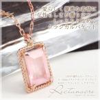 ローズクォーツ ネックレス レディース K10ピンクゴールド K10PG 10k 4×6mm スクエア バゲットカット ペンダント