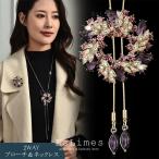 ロングネックレス ラリエット ブローチ お花モチーフ 2way 水晶 チェーン レディース 女性 人気 誕生日 ホワイトデーお返し ギフト