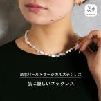 ネックレス 金属アレルギー対応 小粒淡水パールチェーンステンレスネックレス レディース