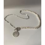 ネックレス 「ステンレス」パール×コンビチェーンマンテルネックレス レディース