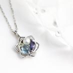 天然石 パール フラワー ホワイトゴールド ネックレス 花 ブルートパーズ アイオライト ペリドット 淡水パール K10 レディース 爆買