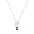 ネックレス レディース エメラルド プラチナ ダイヤモンド ミル打ち フラワーネックレス