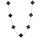 Van Cleef & Arpels ヴァンクリーフ&アーペル マジックアルハンブラ シェル オニキス ネックレス K18イエローゴールド レディース 中古