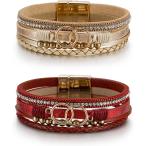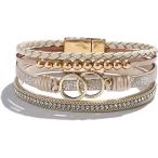 【並行輸入品】FANCY SHINY ボーホー ラップブレスレット レザーカフバングル ゴールドビーズブレスレット レディース 重ね付け可能 インフィ