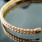 ブレスレット レディース k18 18金 5mm玉入り ミラーボール カットボール K18PG ピンクゴールド x K18WG バングル 形状記憶ワイヤー入り コイル ブレスレット