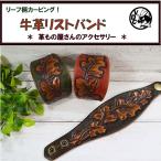 革 リストバンド 牛革 本革 カービング リーフ柄B メンズ レディース レザーバングル 日本製