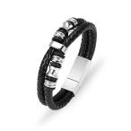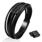【並行輸入品】KStyleジュエリーメンズレディース合金本物レザーブレスレットバングル、ヴィンテージ、ブラック、b1390?,ギフトバッグ付き