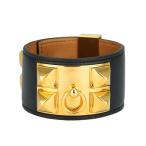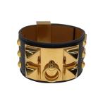 HERMES◆コリエドシアン/バングル/レザー/ブラック/ゴールド/レディース/サイズT2/Mサイズ//