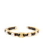 シャネル ココマーク ターンロック パール バングル サイズ:M ゴールド ブラック メッキ レザー レディース CHANEL 【中古】