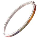 バングル レディース 18金 K18 18KWG ホワイトゴールド マルチカラー プリンセスカット サファイア 11カラット グラデーション レリーフ バングルブレスレット レインボーカラー 刻印入り 鑑別書付き カラーストーン【人気アイテム】
