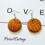 フックピアス アクセサリー レディース 女性用 ファッション小物 ラウンド型 丸型 サークル 木製 ウッドアクセサリー 編み込み風デザイン おしゃれ