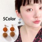 ウッド&ファー ピアス 二次会 パーティー アクセサリー アクセ カジュアル シンプル トレンド 流行 大人 可愛い ナチュラル 春 夏 秋 冬 秋冬