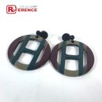 HERMES エルメス Hエキップ Hロゴ アクセサリー ラウンド ラッカーウッド ピアス ローデン グリーン×ブラウン系 レディース【中古】