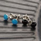 ピアス レディース シルバー925 ターコイズ オニキス 一石 ワンストーン ラウンド 丸型