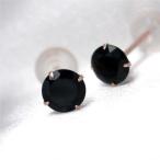 K10 ピンクゴールド製 オニキス シンプル スタッド ピアス 4mm 定番 4本爪 両耳用 レディース メンズ 誕生日プレゼント ギフト