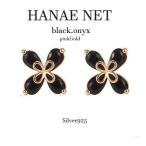 ピアス レディース アレルギー対応 ブラック オニキス クローバー 四葉 シルバー925 ピンクゴールド つけっぱなし